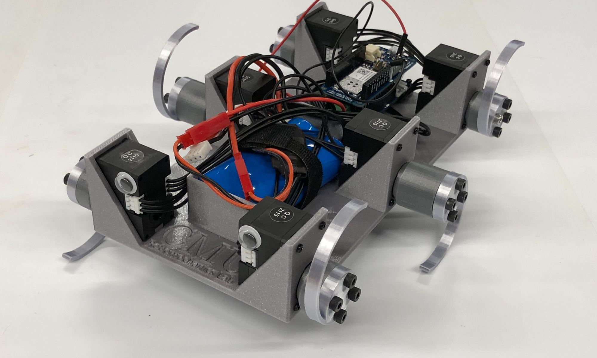 MiniRHex is an open-source, low-cost hexapod developed by the Robomechanics Lab. I updated the mechanical and electrical design from the first version to be higher performance, more robust, and far easier to assemble, with a greatly simplified parts list. You can learn more about MiniRHex and build your own here!