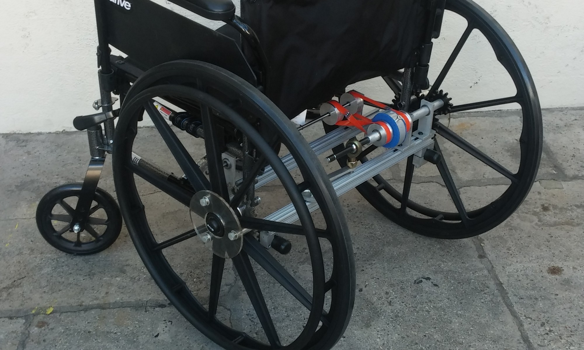 This project was conducted for Caltech’s course Design for Independence from Disability. My team designed and fabricated a prototype mechanism for converting a standard mechanical wheelchair into one operable by a person with hemiplegia. Hemiplegia, in which one half of the body is full or partially paralyzed, is common in stroke victims. While wheelchairs capable of one-arm operation exist, there are limited models and all are high cost. This device allows the user to select a (much less expensive) standard wheelchair of their preference, and convert it to a single-arm operable wheelchair -without permanent modification. Our designed device is able to bolt onto a wheelchair with no need for technical fabrication – only a hex wrench is required for installation.